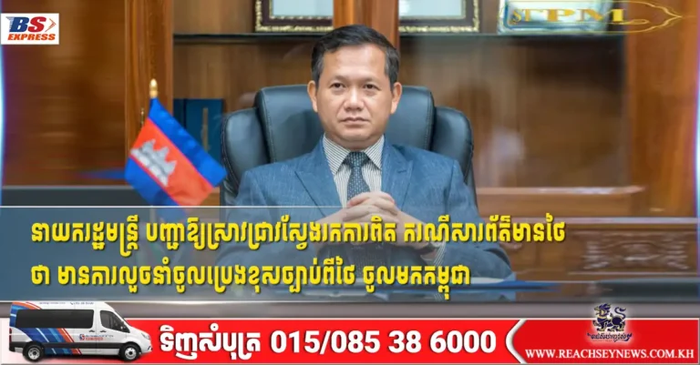 ភ្នំពេញ ៖ សម្តេចមហាបវរធិបតី ហ៊ុន ម៉ាណែត នាយករដ្ឋមន្ត្រី នៃកម្ពុជា បានបញ្ជាឱ្យក្រសួងស្ថាប័នជំនាញស្រាវជ្រាវស្វែងរកការពិត ករណីសារព័ត៌មានថៃ ថា មានការលួចនាំចូលប្រេងខុសច្បាប់ពីថៃចូលមកកម្ពុជា។ តាមរយៈបណ្តាញទំនាក់ទំនងសង្គមផ្លូវការ នៅព្រឹកថ្ងៃទី៣ ខែមេសា ឆ្នាំ២០២៦ សម្ដេចធិបតី ហ៊ុន ម៉ាណែត បានបញ្ជាក់ថា សម្ដេច…