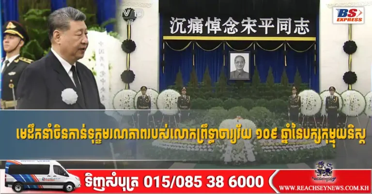 ប៉េកាំង៖ មេដឹកនាំចិននៅថ្ងៃអង្គារ ទី១០ ខែមីនា បានគោរពវិញ្ញាណក្ខន្ធលោក Song Ping ជាសមាជិកបក្សកុម្មុយនិស្តដែលមានអាយុវែងជាងគេនៃស្ថាប័នធ្វើការសម្រេចចិត្តដ៏មានឥទ្ធិពលបំផុតនៅក្នុងបក្សកុម្មុយនិស្តចិន ដែលបានទទួលមរណភាពកាលពីសប្តាហ៍មុននៅទីក្រុងប៉េកាំងក្នុងជន្មាយុ ១០៩ ឆ្នាំ។ លោកប្រធានាធិបតី ស៊ី ជីនពីង លោកនាយករដ្ឋមន្ត្រី លី ឈៀង និងសមាជិកដទៃទៀតនៃគណៈកម្មាធិការអចិន្ត្រៃយ៍ការិយាល័យនយោបាយបច្ចុប្បន្នរបស់បក្ស បានចូលរួមក្នុងពិធីបុណ្យជូនដំណើរសមាជិកមេដឹកនាំនយោបាយនៃសាធារណរដ្ឋប្រជាមានិតចិន។ មេដឹកនាំចិនបានឈរស្ងៀមស្ងាត់ដើម្បីគោរពវិញ្ញាណក្ខន្ធ…