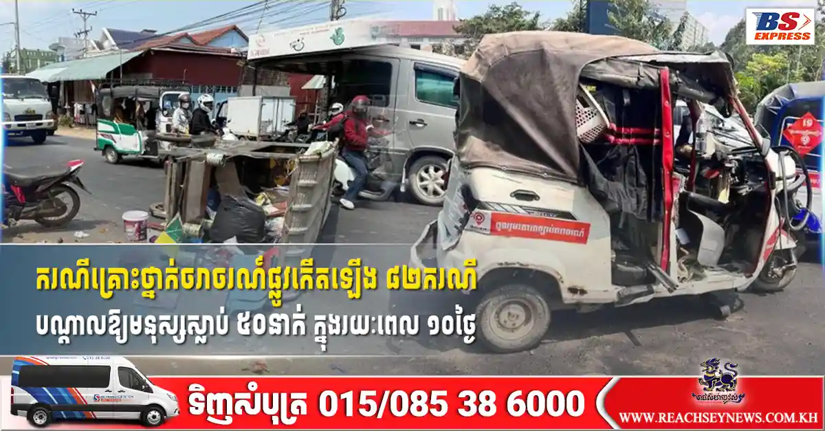 ករណីគ្រោះថ្នាក់ចរាចរណ៍ផ្លូវកើតឡើង ៨២ករណី បណ្តាលឱ្យមនុស្សស្លាប់ ៥០នាក់ ក្នុងរយៈពេល ១០ថ្ងៃ