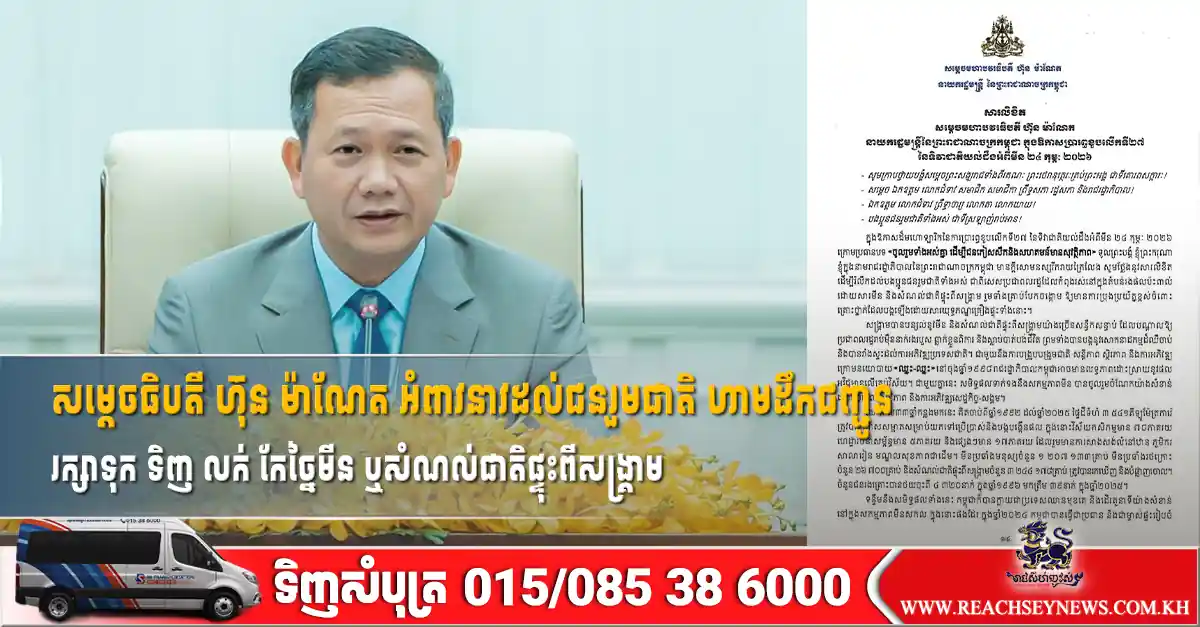 សម្ដេចធិបតី ហ៊ុន ម៉ាណែត អំពាវនាវដល់ជនរួមជាតិ ហាមដឹកជញ្ជូន រក្សាទុក ទិញ លក់ កែច្នៃមីន ឬសំណល់ជាតិផ្ទុះពីសង្គ្រាម