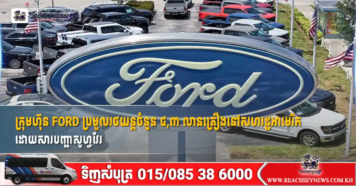 វ៉ាស៊ីនតោន៖ ក្រុមហ៊ុន Ford Motor (F.N) បានប្រកាសនៅថ្ងៃព្រហស្បតិ៍ទី២៦ ខែកុម្ភៈនេះថា ខ្លួនកំពុងប្រមូលរថយន្តភីកអាប់ និងរថយន្ត SUV ចំនួន ៤,៣ លានគ្រឿងនៅសហរដ្ឋអាមេរិក ដោយសារតែកំហុសកម្មវិធីសូហ្វវែរ ដែលអាចបណ្តាលឱ្យហ្វ្រាំងមិនដំណើរការ និងភ្លើងខាងក្រៅខូច។