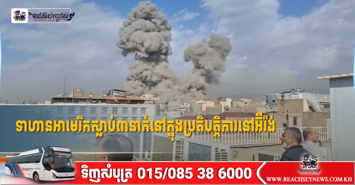 វ៉ាស៊ីនតោន៖ យោធាសហរដ្ឋអាមេរិកបាននិយាយកាលពីថ្ងៃអាទិត្យទី១ ខែមីនាថា កងទ័ពអាមេរិកចំនួន៣នាក់ត្រូវបានសម្លាប់ និង៥នាក់ផ្សេងទៀតបានរងរបួសយ៉ាងធ្ងន់ធ្ងរ ដែលជាគ្រោះថ្នាក់ដំបូងនៃប្រតិបត្តិការរបស់ខ្លួនប្រឆាំងនឹងអ៊ីរ៉ង់។