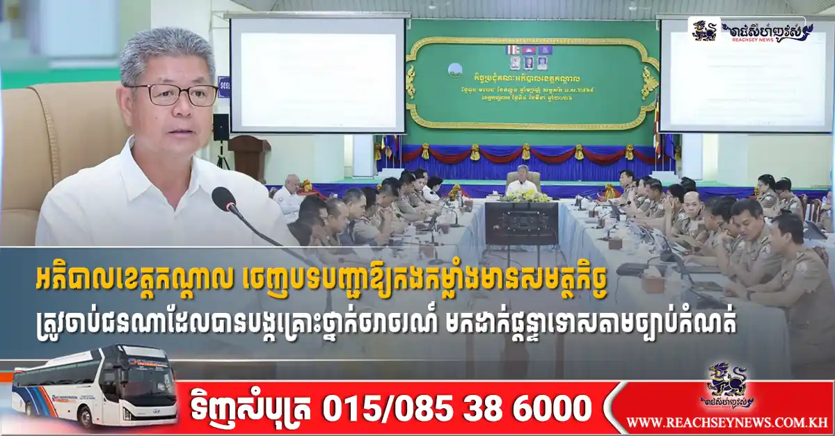 អភិបាលខេត្តកណ្ដាល ចេញបទបញ្ជាឱ្យកងកម្លាំងមានសមត្ថកិច្ច ត្រូវចាប់ជនណាដែលបានបង្កគ្រោះថ្នាក់ចរាចរណ៍ មកដាក់ផ្ដន្ទាទោសតាមច្បាប់កំណត់