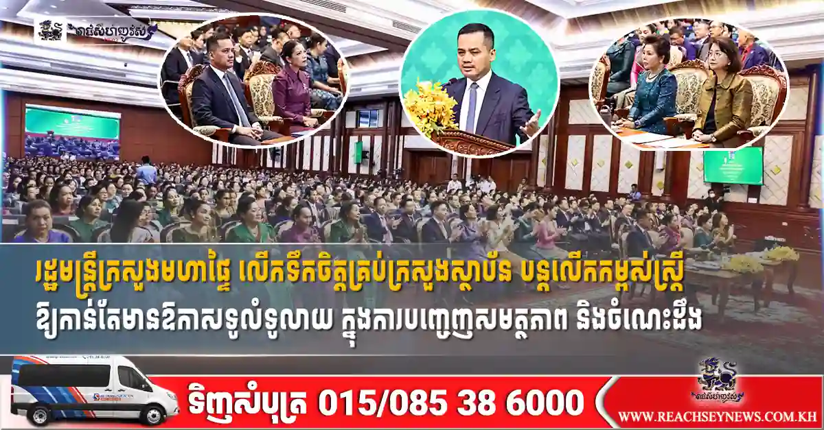 រដ្ឋមន្ត្រីក្រសួងមហាផ្ទៃ លើកទឹកចិត្តគ្រប់ក្រសួងស្ថាប័ន បន្តលើកកម្ពស់ស្រ្តី ឱ្យកាន់តែមានឱកាសទូលំទូលាយ ក្នុងការបញ្ចេញសមត្ថភាព និងចំណេះដឹង