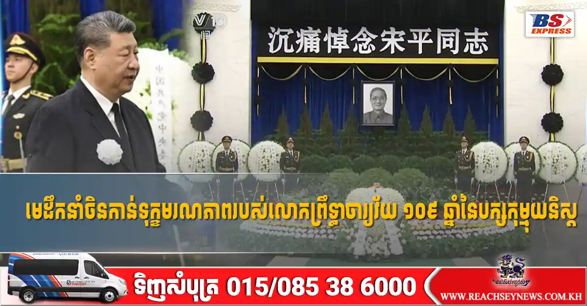 ប៉េកាំង៖ មេដឹកនាំចិននៅថ្ងៃអង្គារ ទី១០ ខែមីនា បានគោរពវិញ្ញាណក្ខន្ធលោក Song Ping ជាសមាជិកបក្សកុម្មុយនិស្តដែលមានអាយុវែងជាងគេនៃស្ថាប័នធ្វើការសម្រេចចិត្តដ៏មានឥទ្ធិពលបំផុតនៅក្នុងបក្សកុម្មុយនិស្តចិន ដែលបានទទួលមរណភាពកាលពីសប្តាហ៍មុននៅទីក្រុងប៉េកាំងក្នុងជន្មាយុ ១០៩ ឆ្នាំ។