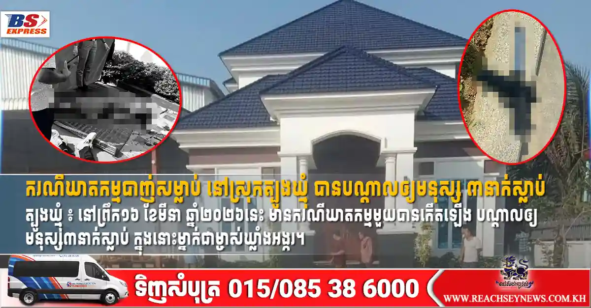ត្បូងឃ្មុំ ៖ នៅព្រឹក១៦ ខែមីនា ឆ្នាំ២០២៦នេះ មានករណីឃាតកម្មមួយបានកើតឡើង បណ្ដាលឲ្យមនុស្ស៣នាក់ស្លាប់ ក្នុងនោះម្នាក់ជាម្ចាស់ឃ្លាំងអង្ករ។