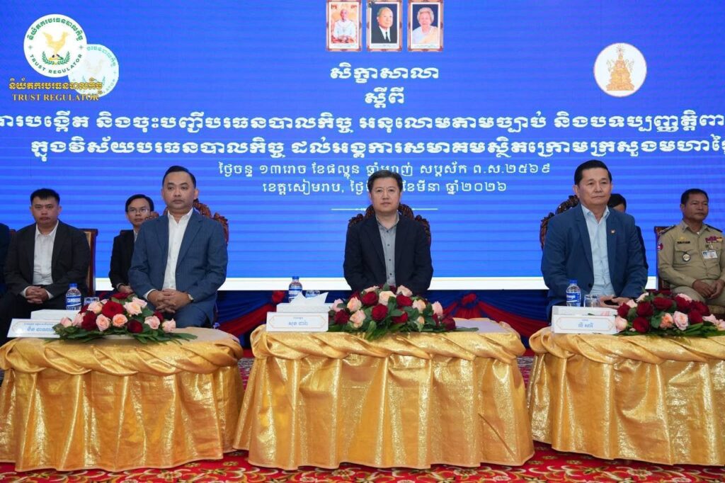 សៀមរាប ៖ ដោយទទួលបានការអនុញ្ញាតពី ឯកឧត្តមអគ្គបណ្ឌិតសភាចារ្យ អូន ព័ន្ធមុនីរ័ត្ន ឧបនាយករដ្ឋមន្រ្តី រដ្ឋមន្រ្តីក្រសួងសេដ្ឋកិច្ចនិងហិរញ្ញវត្ថុ និងជាប្រធានក្រុមប្រឹក្សា អាជ្ញាធរសេវាហិរញ្ញវត្ថុមិនមែនធនាគារ (អ.ស.ហ.), និយ័តករបរធនបាលកិច្ច (ន.ប.ធ.), ក្រសួងមហាផ្ទៃ និងរដ្ឋបាលសាលាខេត្តសៀមរាប នៅថ្ងៃទី១៦ ខែមីនា ឆ្នាំ២០២៦ បានសហការរៀបចំសិក្ខាសាលាស្ដីពី «ការបង្កើត និងចុះបញ្ជីបរធនបាលកិច្ច អនុលោមតាមច្បាប់ និងបទប្បញ្ញត្តិពាក់ព័ន្ធ ក្នុងវិស័យបរធនបាលកិច្ច»។