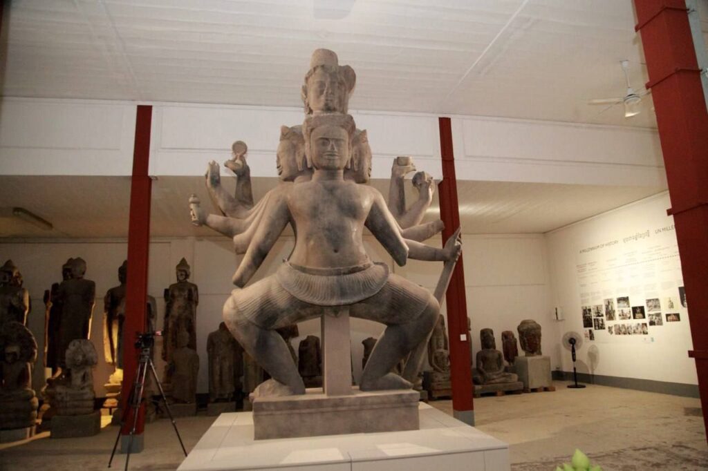 ភ្នំពេញ ៖ ប្រតិមាឬបដិមា ព្រះសិវៈរាំ កម្ពស់៥ម៉ែត្រ មានព្រះសិរ២ជាន់ ព្រះភក្ត្រ៥ ព្រះហស្ថ១០ មានប្រភពមកពីប្រាសាទក្រហមនៅតំបន់ប្រាសាទកោះកេរ នាស.វ.ទី១០នៃគ.ស. បានឈរត្រដែតឡើងវិញ បន្ទាប់ពីបានជួសជុលអស់រយៈពេលជាង៥ឆ្នាំ ដោយក្រុមអ្នកជំនាញនៃអាជ្ញាធរជាតិព្រះវិហារ និងសាលាបារាំងចុងបូព៌ា សហការជាមួយអភិក្សដ្ឋានអង្គរ អាជ្ញាធរជាតិអប្សរា និងមានការគាំទ្រពីសម្ព័ន្ឋភាពការពារបេតិកភ័ណ្ឌ (ALIPH)។
