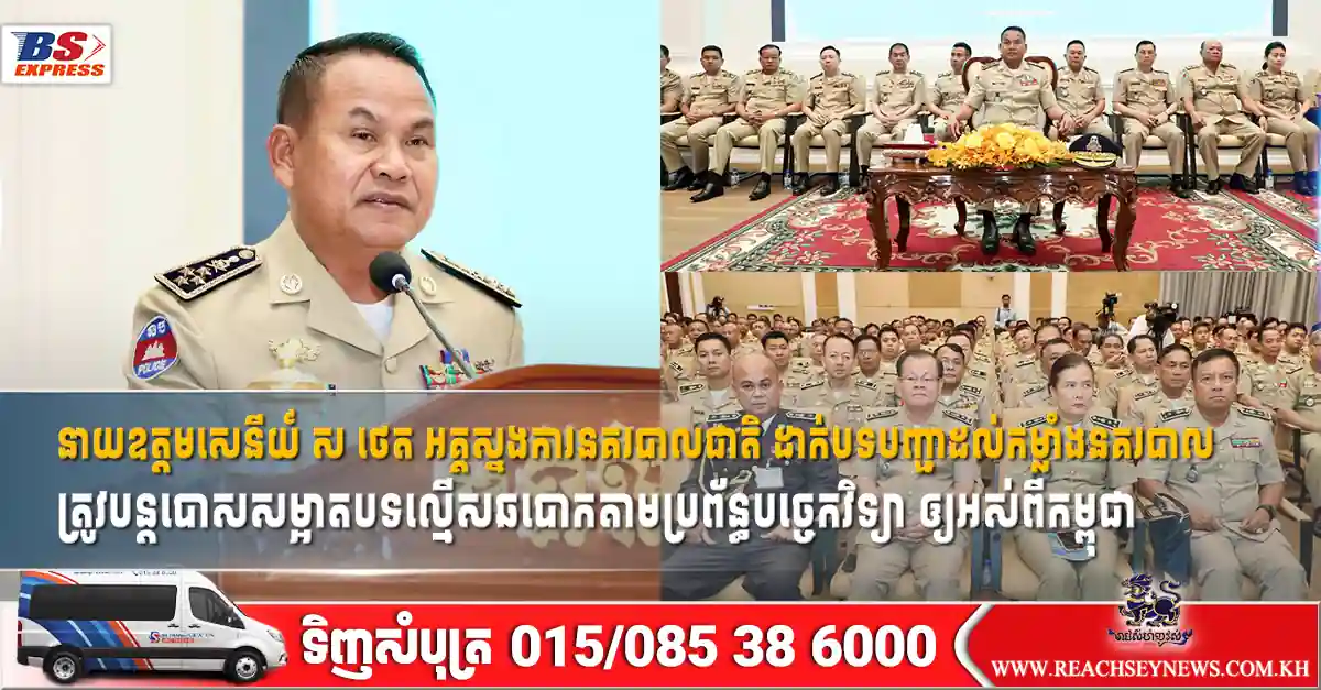 នាយឧត្តមសេនីយ៍ ស ថេត អគ្គស្នងការនគរបាលជាតិ ដាក់បទបញ្ជាដល់កម្លាំងនគរបាល ត្រូវបន្ដបោសសម្អាតបទល្មើសឆបោកតាមប្រព័ន្ធបច្ចេកវិទ្យា ឲ្យអស់ពីកម្ពុជា