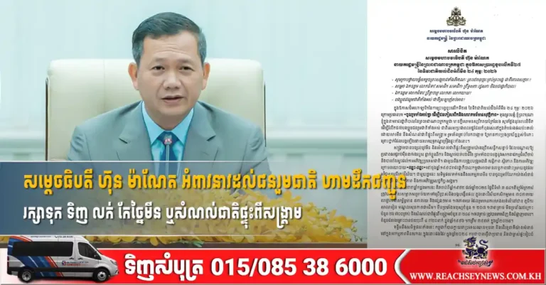សម្ដេចធិបតី ហ៊ុន ម៉ាណែត អំពាវនាវដល់ជនរួមជាតិ ហាមដឹកជញ្ជូន រក្សាទុក ទិញ លក់ កែច្នៃមីន ឬសំណល់ជាតិផ្ទុះពីសង្គ្រាម