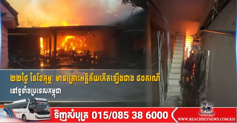 ២២ថ្ងៃ នៃខែកុម្ភៈ មានគ្រោះអគ្គិភ័យកើតឡើងជាង ៨០ករណី នៅទូទាំងប្រទេសកម្ពុជា