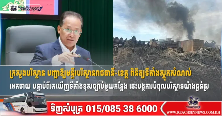 ភ្នំពេញ ៖ ថ្ងៃទី៧ ខែមីនា ឆ្នាំ២០២៦ ក្រសួងបរិស្ថាន បានបញ្ជាឱ្យមន្ទីរបរិស្ថានរាជធានី-ខេត្ត ទាំងអស់ ពិនិត្យ និងរាយការណ៍អំពីទីតាំងស្តុកសំណល់អេតចាយនៅទូទាំងប្រទេស ដើម្បីធានាឱ្យមានការអនុវត្តតាមបទប្បញ្ញត្តិបរិស្ថាន បន្ទាប់ពីអាជ្ញាធររកឃើញទីតាំងស្តុកសំណល់ខុសច្បាប់មួយកន្លែងបានឆេះ បង្កការបំពុលបរិស្ថានយ៉ាងធ្ងន់ធ្ងរ។ ក្រសួង បានបញ្ជាក់ថា សេចក្តីណែនាំនេះត្រូវបានចេញបន្ទាប់ពីមានអគ្គិភ័យឆេះទីតាំងស្តុកសំណល់អេតចាយខុសច្បាប់មួយកន្លែង នៅខេត្តកំពង់ស្ពឺ ដែលបង្កផ្សែងខ្មៅក្រាស់ និងបង្កការព្រួយបារម្ភអំពីផលប៉ះពាល់ដល់បរិស្ថាន និងសុខភាពសាធារណៈ។…